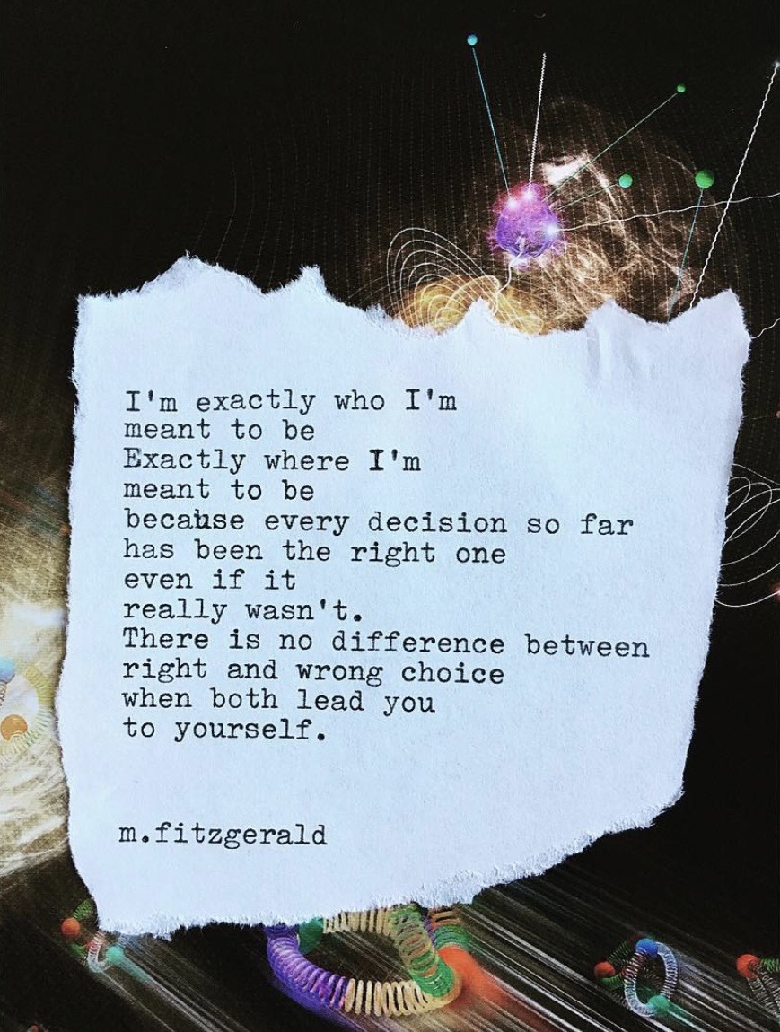 11″ x 14″ Canvas: I’m exactly who I’m meant to be, exactly where I’m meant to be, because every decision so far has been the right one, even if it really wasn’t. There is no difference between right and wrong choice when both lead you to yourself.