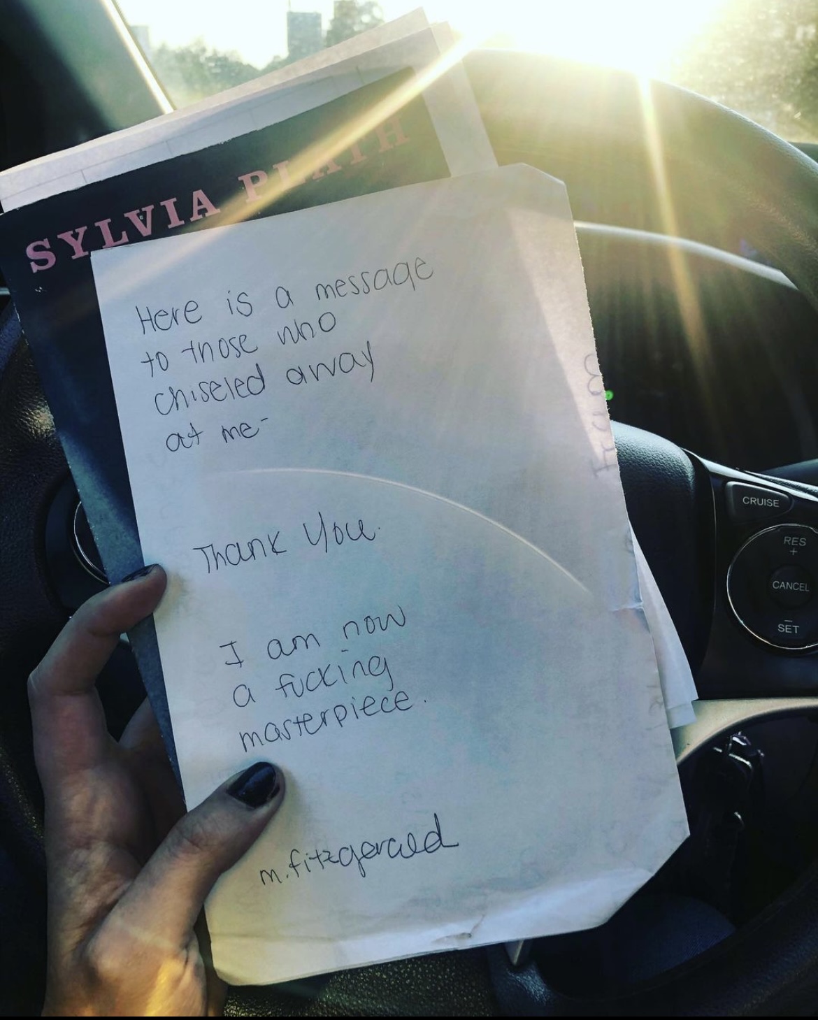 11″ x 14″ Canvas: Here is a message to those who chiseled away at me: Thank you. I am now a fucking masterpiece.