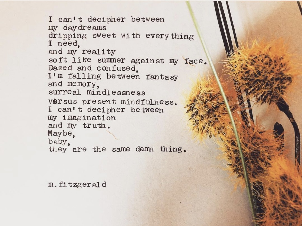 11″ x 14″ Canvas: I can’t decipher between my daydreams, dripping sweet with everything I need, and my reality, soft like summer against my face. Dazed and confused, I am falling between fantasy and memory, surreal mindlessness versus present mindfulness. I can’t decipher between my imagination and my truth. Maybe, baby, they are the same damn thing.