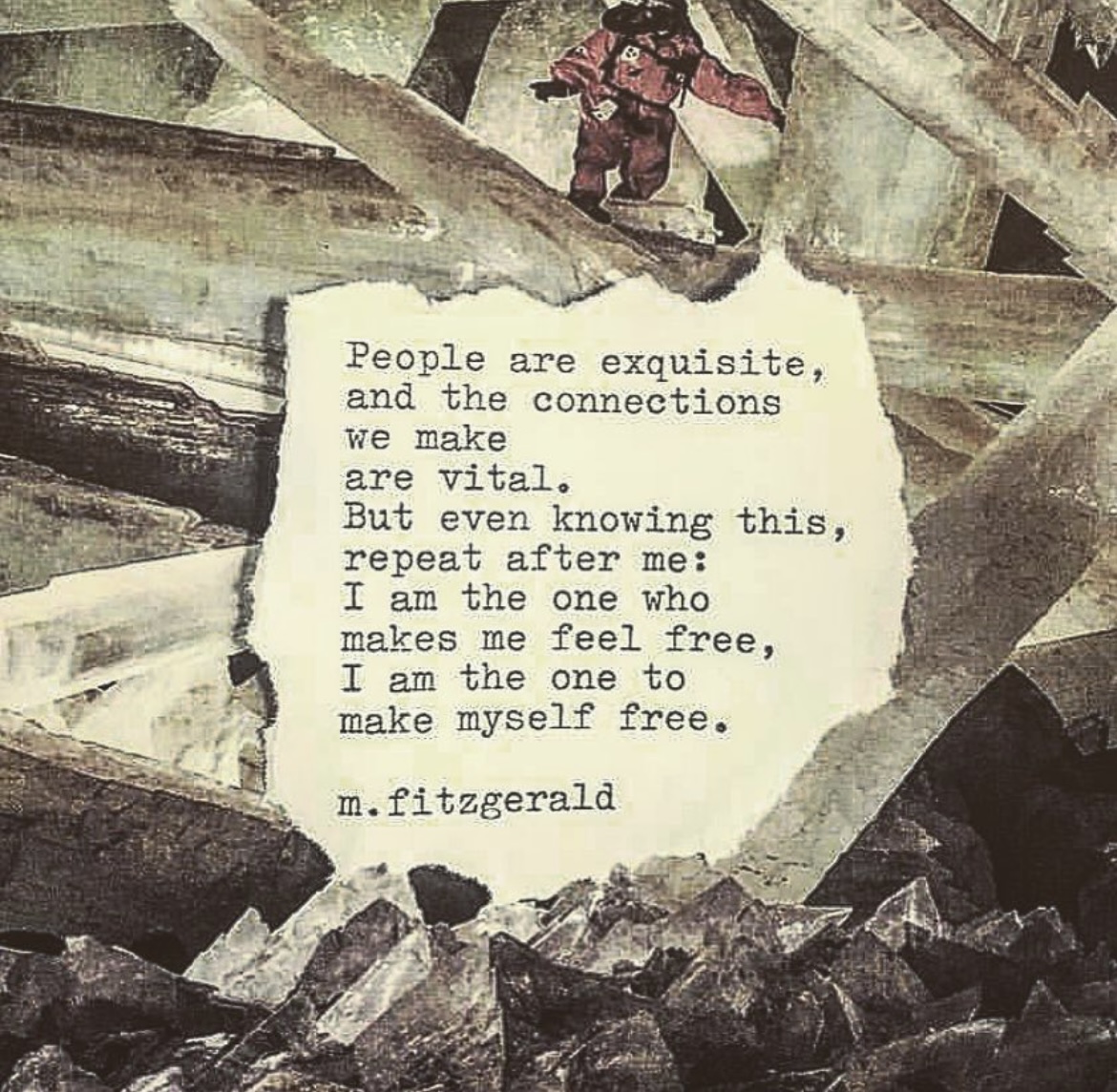 11″ x 14″ Canvas: People are exquisite, and the connections we make are vital. But even knowing this, repeat after me: I am the one who makes me feel free. I am the one to make myself free.