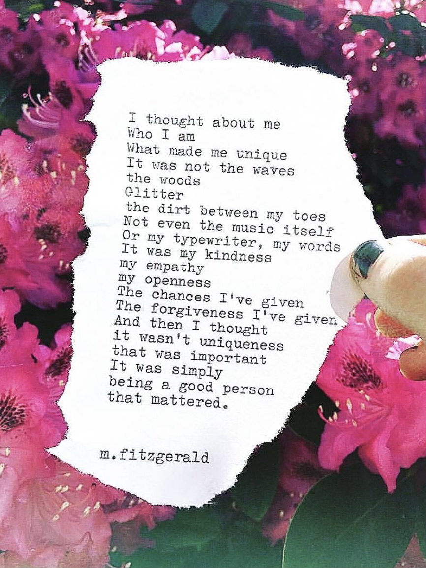 11″ x 14″ Canvas: I thought about me. Who I am. What made me unique. It was not the waves, the woods, glitter, the dirt between my toes. Not even the music itself, or my typewriter, my words. It was my kindness, my openness. The chances I’ve given, the forgiveness I’ve given. And then I thought it wasn’t uniqueness that was important. It was simply being a good person that mattered.